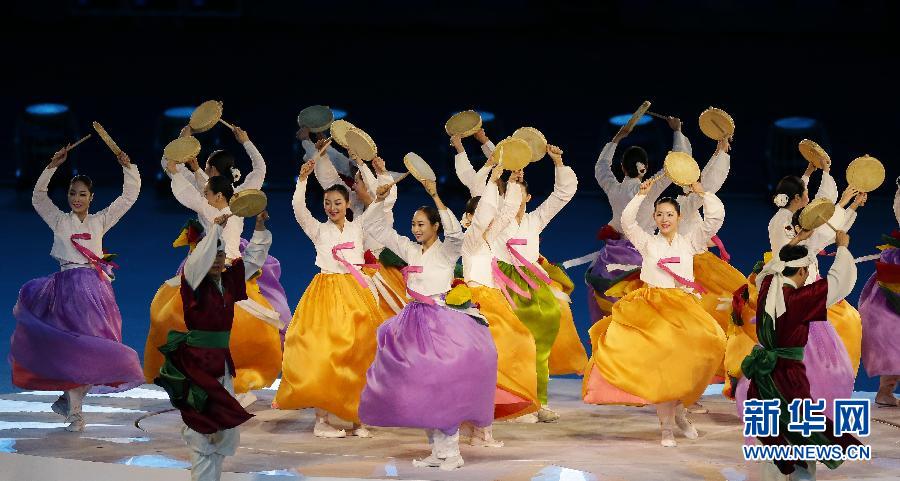 10月4日,第17届亚洲运动会闭幕式在仁川亚运会主体育场举行。 这是闭幕式上的文艺表演。 新华社记者郑焕松摄