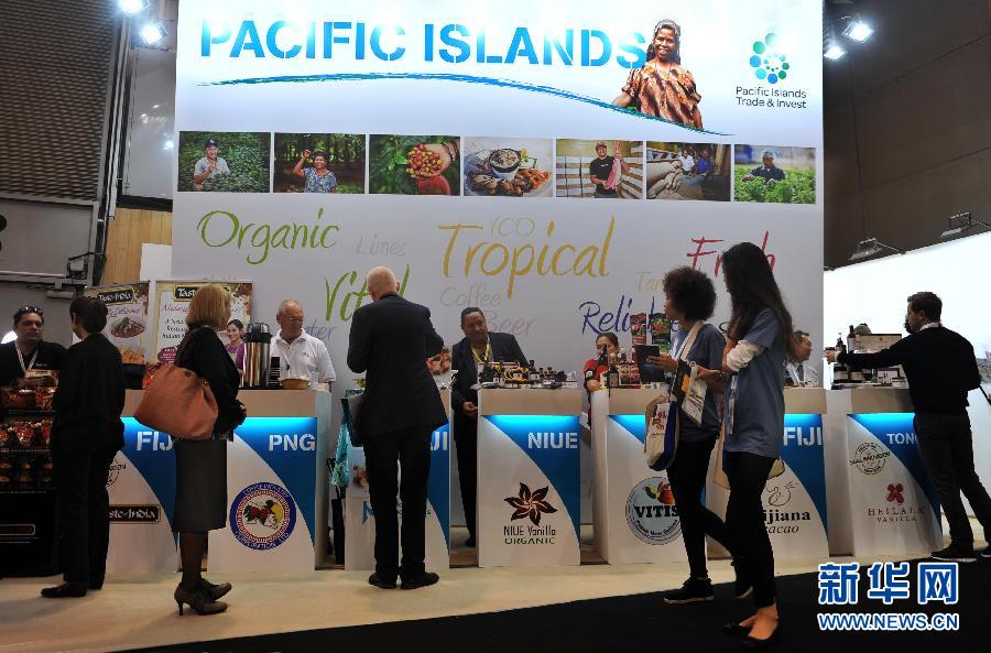10月19日,人们在法国巴黎的2014巴黎国际食品展上参观。当日,为期五天的2014巴黎国际食品展在位于北郊的维勒班展览中心拉开帷幕,来自世界各地6000多家展商参展。展品包括水果、蔬菜、海鲜、调味品、奶制品、甜品、酒类、饮料、食品加工机械等。新华社记者陈晓伟摄