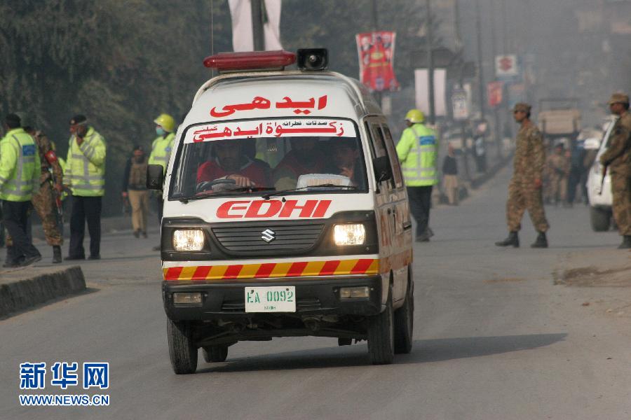 12月16日,在巴基斯坦白沙瓦市,一辆救护车开往发生袭击事件的学校。巴基斯坦开伯尔-普什图省首席部长16日说,当天发生的白沙瓦学校遇袭事件已造成84人死亡,其中包括81名学生、2名教师和1名安全部队人员。新华社发(艾哈迈德摄)
