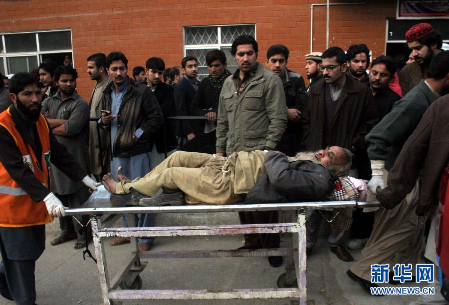 12月16日,在巴基斯坦北部城市白沙瓦,一名受伤的男子被送往医院。据巴基斯坦媒体16日晚报道,针对白沙瓦军人子弟学校遇袭事件的救援行动已基本结束,袭击造成至少137人死亡、245人受伤,另有9名武装分子死亡。新华社发(辛迪克摄)