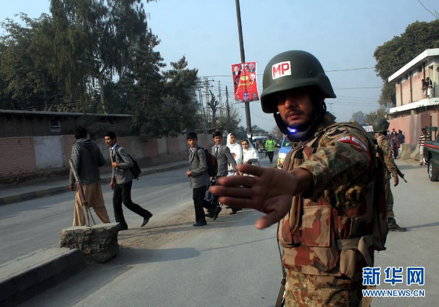 12月16日,在巴基斯坦北部城市白沙瓦,一名军人在袭击现场警戒。据巴基斯坦媒体16日晚报道,针对白沙瓦军人子弟学校遇袭事件的救援行动已基本结束,袭击造成至少137人死亡、245人受伤,另有9名武装分子死亡。新华社发(辛迪克摄)