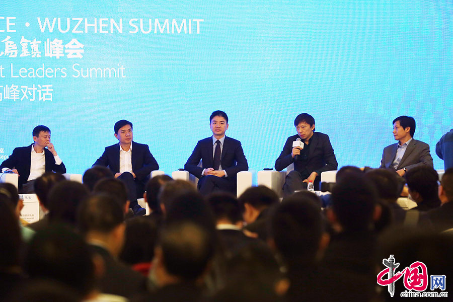 2014年11月20日上午,首届世界互联网大会,阿里巴巴董事局主席马云、百度公司创始人兼首席执行官李彦宏、京东集团创始人兼首席执行官刘强东、搜狐公司董事局主席兼首席执行官张朝阳、小米科技创始人兼首席执行官雷军等国内互联网大佬齐聚浙江乌镇,与国际互联网巨头共话未来。中国网记者 董宁摄影
