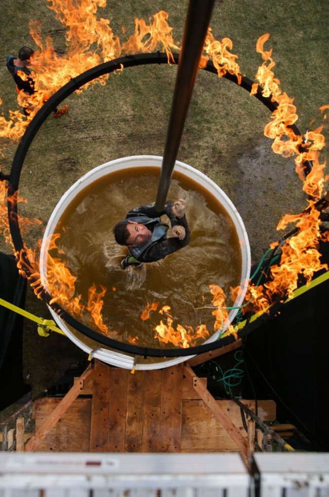 今年的挑战赛中,增设了从火圈中爬上绳索的项目。(网页截图)