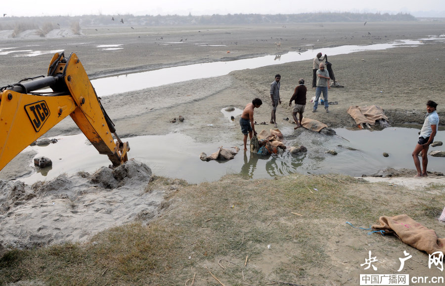 报道称,数以百万计的印度人进行露天火葬,将逝者的骨灰撒入河中。然而有些买不起足够的火葬用品的家庭,有时直接将遗体放进水中,有些则火化不完全。另外,根据传统,有一些神职人员的遗体也是被直接放入水中。