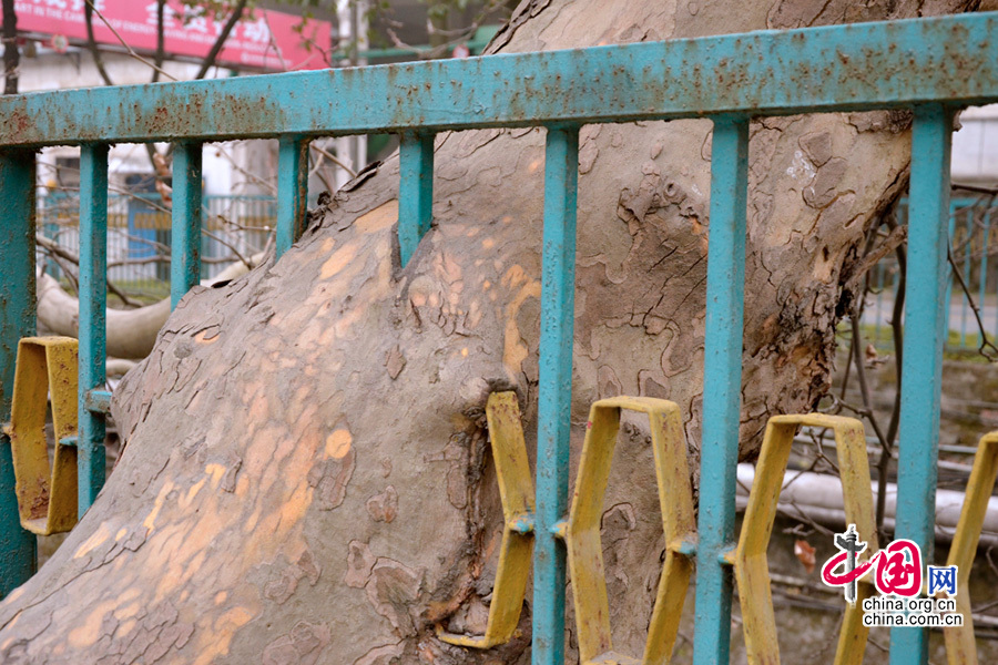 湖北十堰现“树坚强” 金属护栏穿胸依然顽强生长[组图]