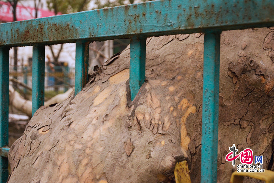 湖北十堰现“树坚强” 金属护栏穿胸依然顽强生长[组图]