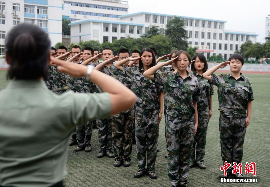 姑娘们与男学员一起练习队列队形。杨华峰 摄