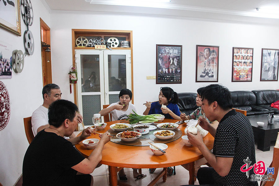 午饭是普通但不失温馨的家常菜。在饭桌上,魏俊华和爱人与徒弟们一起说说笑笑,享受难得的清闲时间。
