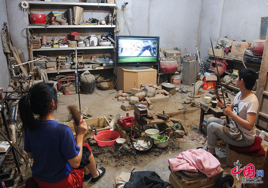 在录音棚里,魏俊华的两名“90后”徒弟梁超南和严瑞红正在进行拟音。如今,魏俊华把重心转移到了人才培养、指导上,而在拟音棚拟音的工作,更多是交给徒弟们。中国网记者 伦晓璇 摄