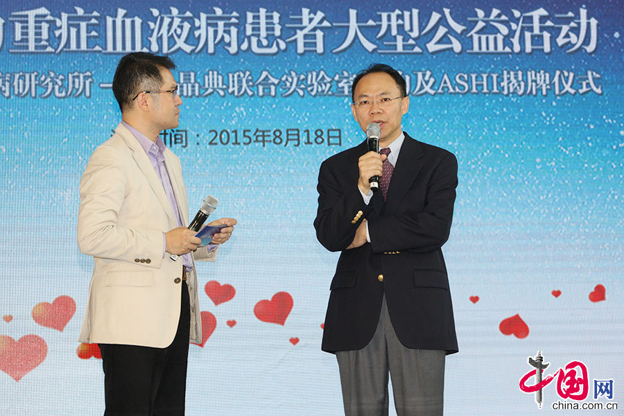 博奥生物集团总裁程京院士在活动现场讲话,并现场个人为一位白血病患者家庭捐助1万元。中国网 董宁摄影