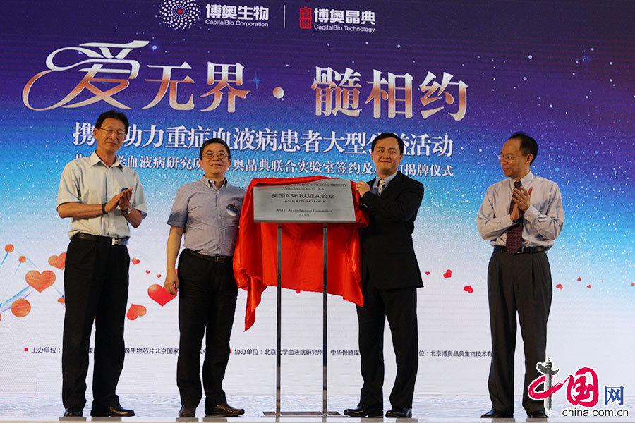 博奥晶典HLA分型检测实验室获得美国组织相容性及免疫遗传学协会(ASHI)认证,博奥晶典就此成为国内首家且唯一拥有CNAS和ASHI双认证的企业。图为现场揭牌仪式。中国网 董宁摄影
