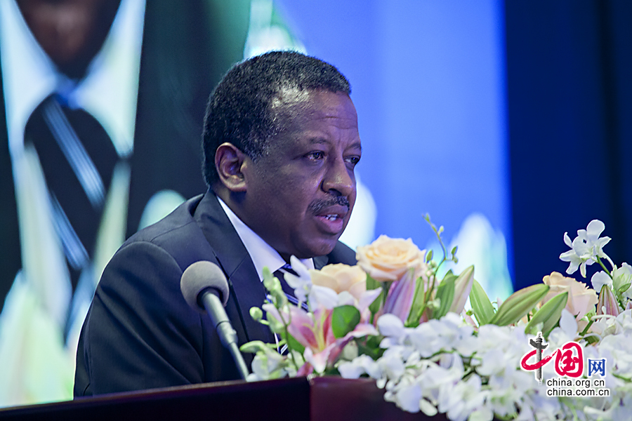 10日下午,2015中国—阿拉伯国家博览会网上丝绸之路论坛在宁夏回族自治区银川市宁夏国际会堂举行,论坛主题为“网上丝路·互联互通”。图为苏丹投资部次长艾哈迈德·沙瓦尔 做主题演讲。中国网记者 张若梦 摄