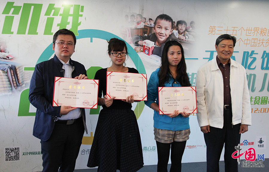 中国扶贫基金会副会长江绍高为合作伙伴颁发荣誉证书。中国网记者 伦晓璇 摄