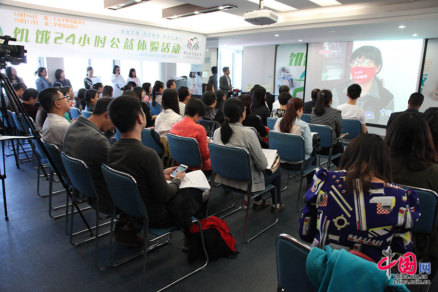 10月12日,饥饿24小时公益体验活动启动仪式在中国扶贫基金会举行。图为活动现场。中国网记者 伦晓璇 摄