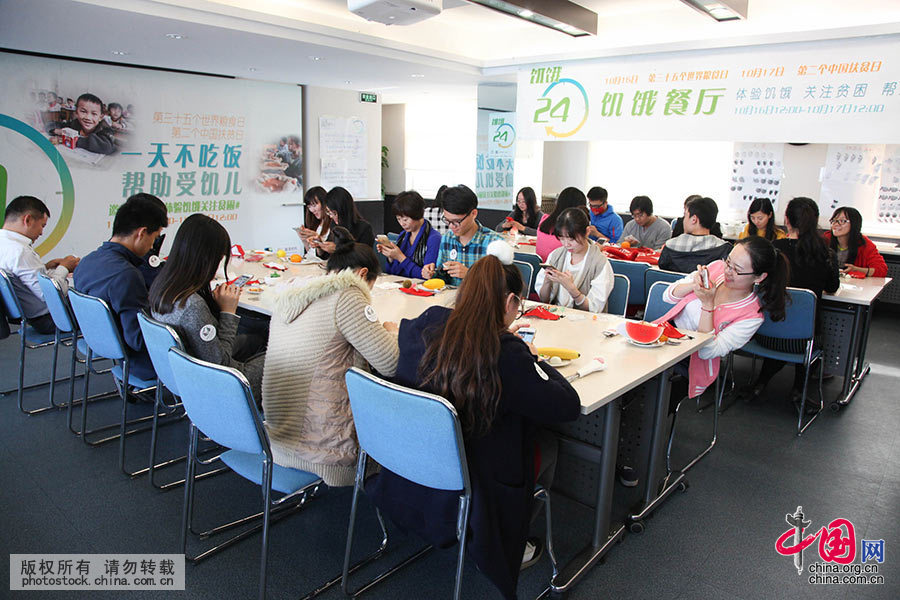10月16日,“饥饿24小时公益体验活动”重要活动之一饥饿餐厅在中国扶贫基金会“开张”。图为活动现场。中国网记者 伦晓璇 摄