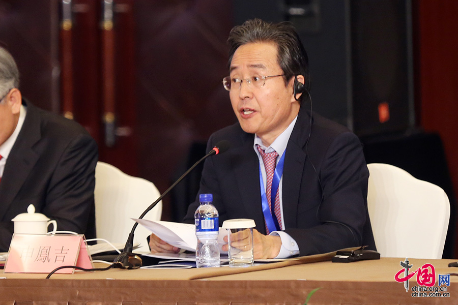 韩国国立外交院外交安保研究所所长、首任中日韩三国合作秘书处秘书长申凤吉发言。中国网记者 董宁 摄