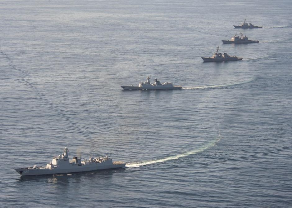 当地时间11月7日,结束对美国友好访问的中国海军152舰艇编队导弹驱逐舰济南舰、导弹护卫舰益阳舰和综合补给舰千岛湖舰,与美国海军在梅波特港东南的大西洋海域举行联合演练。(来源:环球网、新华网)