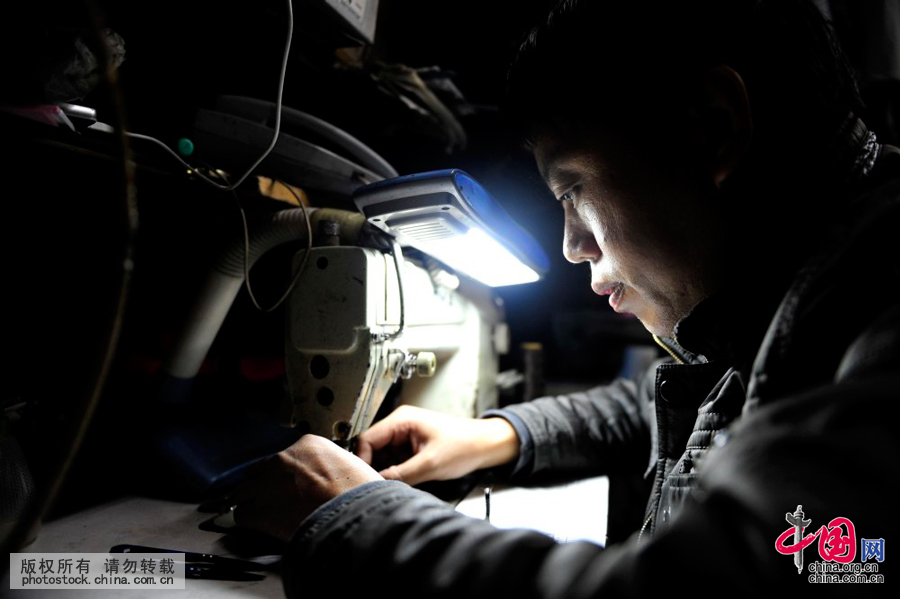季国军师傅正在为一件皮衣进行改制。