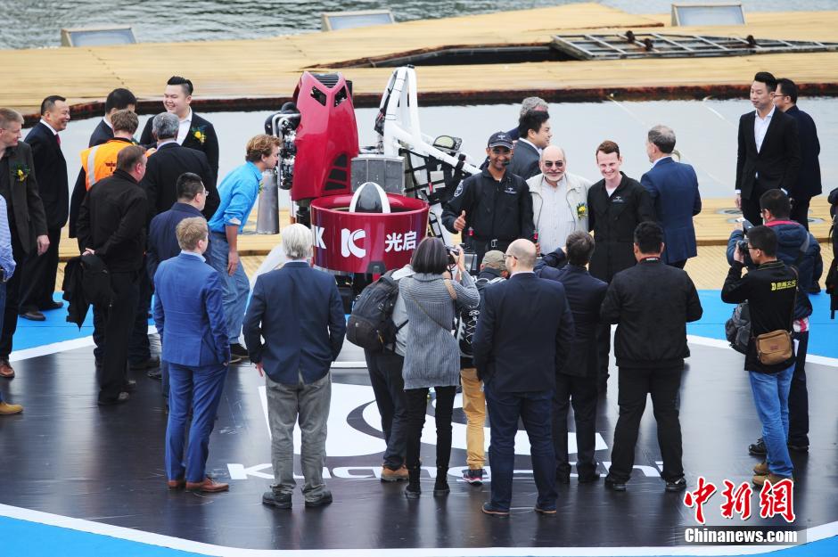 12月6日下午,深圳光启“未来飞行秀”飞行包震撼上演,由澳洲皇家飞行员驾驶着飞行包在深圳欢乐海岸做载人飞行和无人飞行,这是光启飞行包在中国境内的首次飞行。现场,光启与商家代表签约100台飞行包,同时还宣布成立钢铁侠俱乐部。飞行包可用于应急救援、公安、消防、旅游等领域。中新社记者陈文 摄