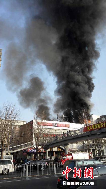 12月24日上午,北京航天桥附近一建筑物失火,现场浓烟滚滚。目前,消防车已赶至现场。 中新社记者 徐冬冬 摄