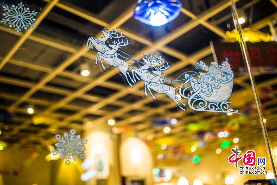 圣诞节期间各类餐饮店的窗户上也布满圣诞元素吸引食客。中国网 郑亮摄影