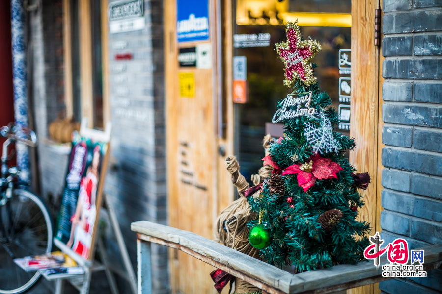 北京著名的酒吧街,虽然白天并不是营业的高峰,但是各类圣诞主题的装饰也非常显眼。中国网 郑亮摄影