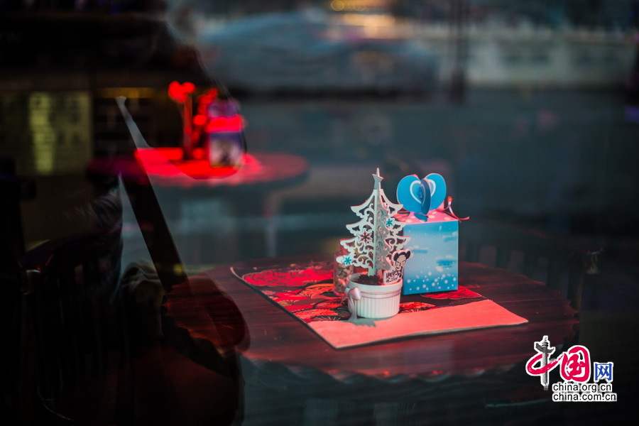北京著名的酒吧街,虽然白天并不是营业的高峰,但是各类圣诞主题的装饰也非常显眼。中国网 郑亮摄影