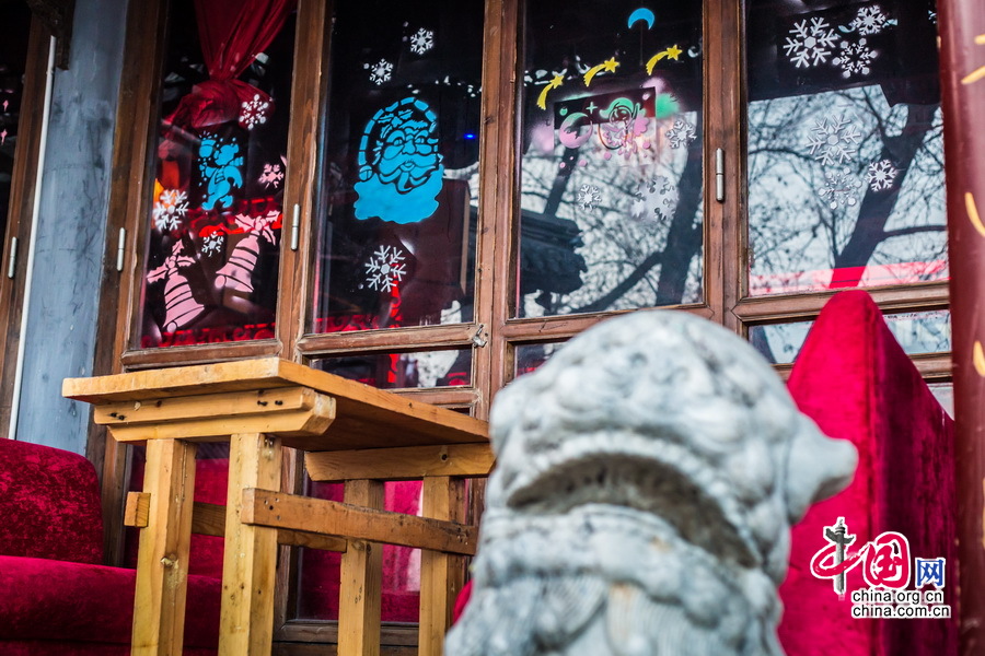 北京著名的酒吧街,虽然白天并不是营业的高峰,但是各类圣诞主题的装饰也非常显眼。中国网 郑亮摄影