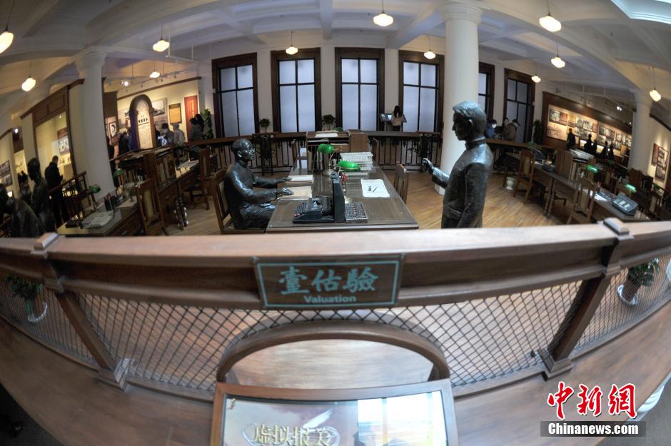 12月30日,武汉市民与游客参观江汉关博物馆里模拟报关大厅。当日,江汉关博物馆开馆对外开放。江汉关博物馆建筑面积4359平米,其中展厅面积2300余平米,分为三层。征集到了各级各类文物3000余件,包括金属器、杂项、瓷器、纸类文物等多个类别。目前共展出了具有代表性的文物500余件。作为武汉市地标建筑,江汉关大楼见证了武汉百年沧桑巨变,是武汉走向现代化的重要历史见证物。中新社记者 张畅 摄