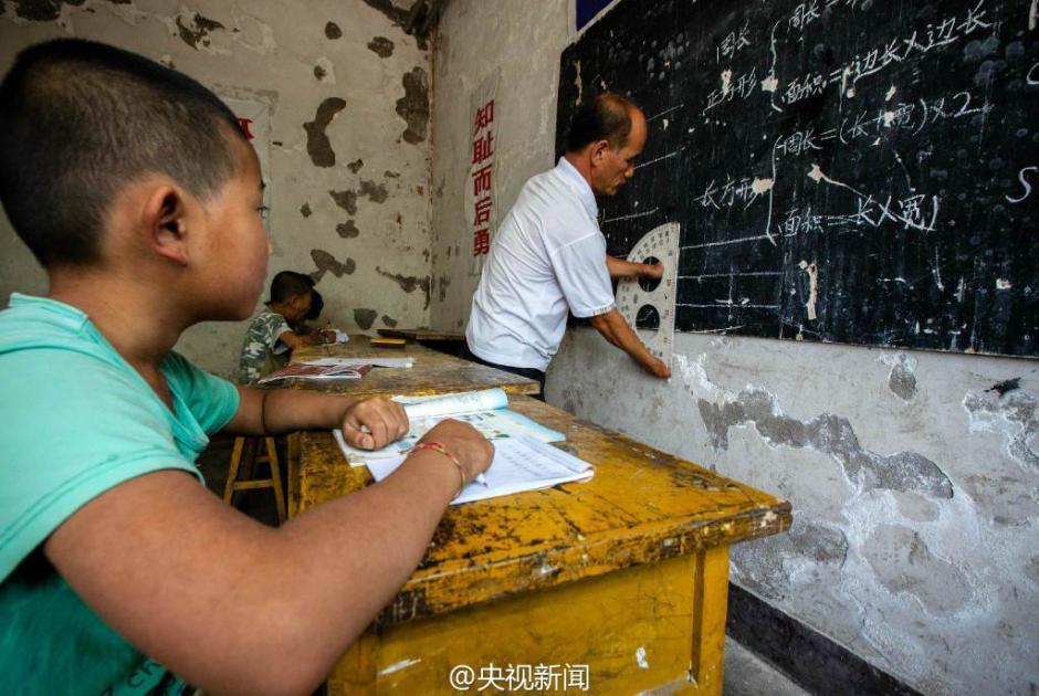 “无指”山村老师执教26年 胳膊夹粉笔写板书[组图]