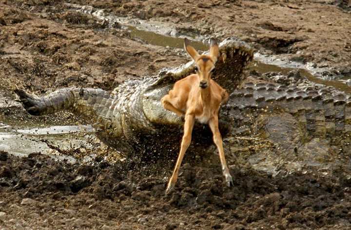小黑斑羚自投罗网成鳄鱼腹中物[组图]