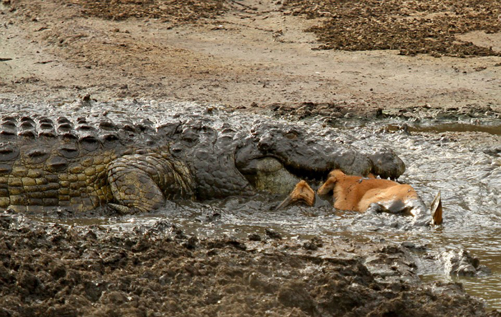 小黑斑羚自投罗网成鳄鱼腹中物[组图]