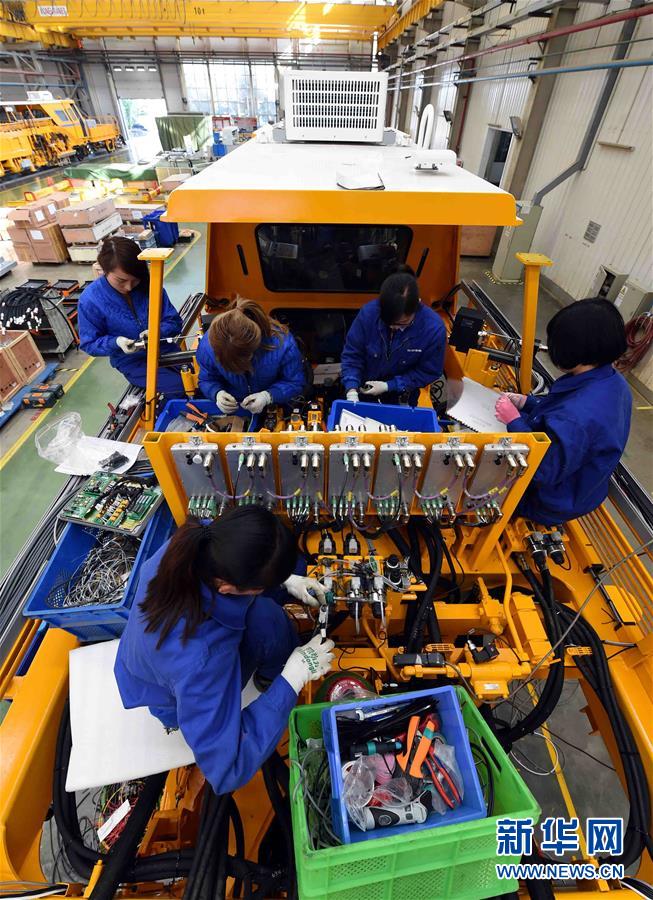 1月19日,几名女工在总装分厂组装捣固车电气控制系统。新华社记者 杨宗友 摄