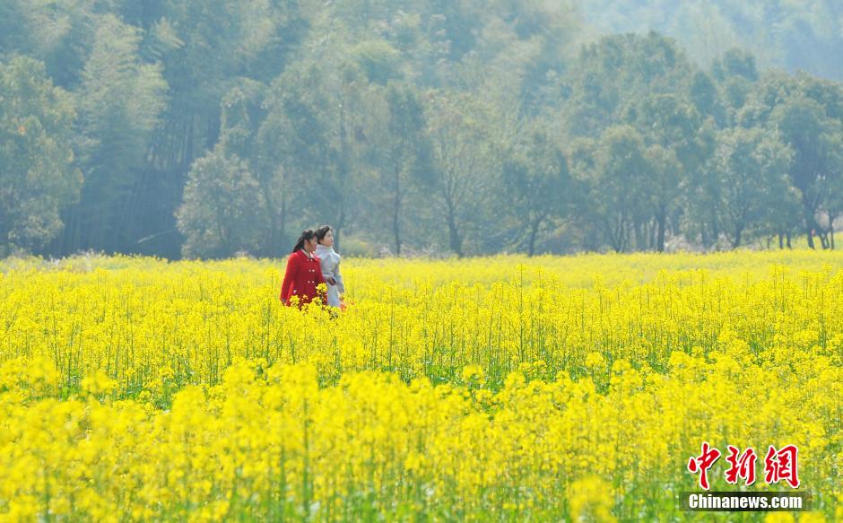 南昌郊区500余亩油菜花开放 “黄金海”吸引游人[组图]