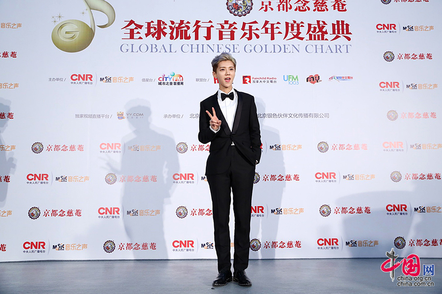 “MusicRadio京都念慈菴 全球流行音乐年度盛典”举行。图为鹿晗 图片由MusicRadio音乐之声提供