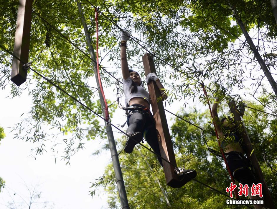 长沙美女健身教练丛林高空障碍物中“漫步”[组图]