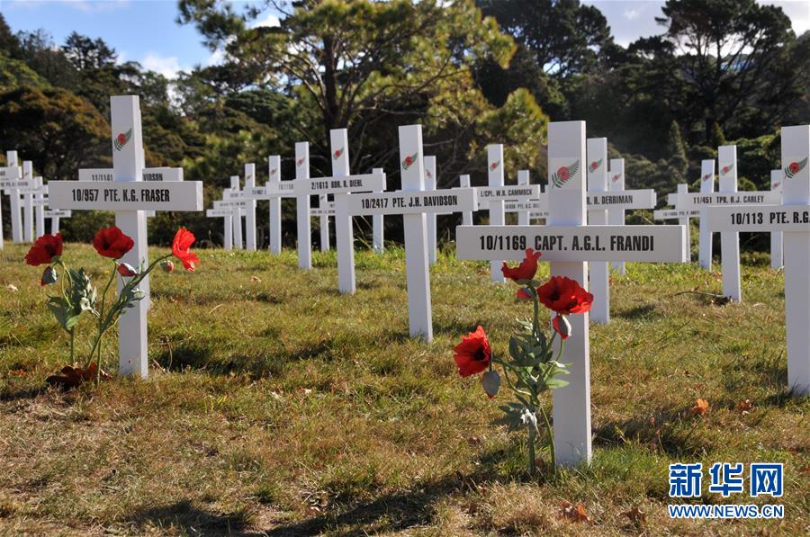 4月19日,新西兰首都惠灵顿植物园内竖立的白色十字架上写着牺牲官兵的名字。 4月18日至5月9日,新西兰首都惠灵顿植物园内一处草坪上竖起白色十字架,以纪念在第一次世界大战中牺牲的惠灵顿地区参战官兵。一战期间,由澳大利亚和新西兰士兵组成的澳新军团以英国自治领军队身份参战,约9000名澳大利亚士兵和2700名新西兰士兵阵亡。每年4月25日是新西兰和澳大利亚“澳新军团日”。 新华社记者宿亮摄