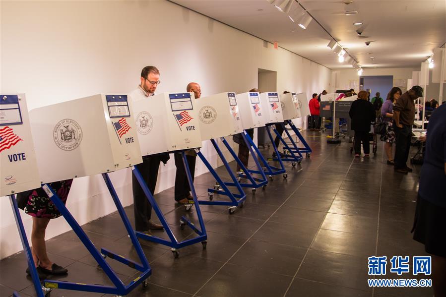 4月19日,选民在纽约布鲁克林博物馆投票点填写选票。当日,纽约州迎来美国总统大选初选投票。民主党候选人希拉里·克林顿、伯尼·桑德斯;共和党候选人唐纳德·特朗普、泰德·克鲁兹将分别对纽约州的291个民主党代表席位和95个共和党代表席位展开激烈争夺。新华社记者李畅翔摄