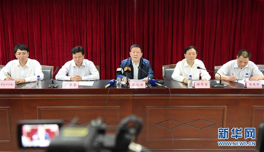 福建泰宁“5·8”泥石流灾害情况通报会现场(5月10日摄)。