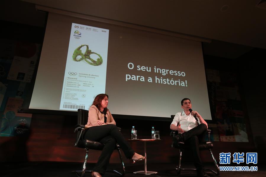 5月20日,里约奥组委门票总监多诺万·费雷蒂(右)和里约奥组委品牌经理贝丝·卢拉在发布会上回答媒体提问。当日,里约奥运会组委会召开新闻发布会公布了奥运会门票样式,同时宣布首批印刷出来的奥运门票在巴西利亚时间20日13时正式通过邮局系统邮寄给购票者。新华社记者李明摄