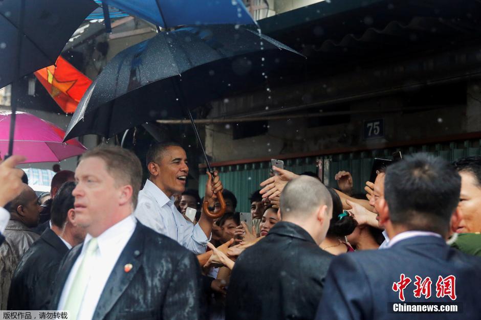 奥巴马冒雨逛越南市场 偶遇美国名厨安东尼[组图]