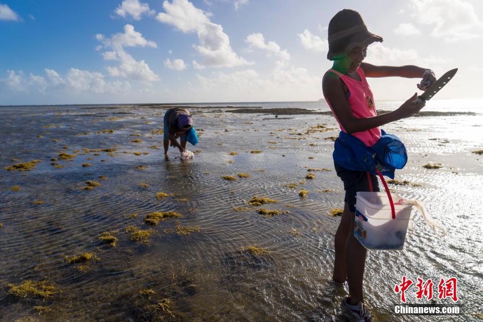 斐济群岛盛产海鲜,但相对于当地人的收入,海鲜在市场上的售价并不低,当地百姓常常通过赶海和钓鱼来丰富自家餐桌。每月退潮后,一些孩子会在家长的带两下去海边捡海胆等海鲜。祝莉摄
