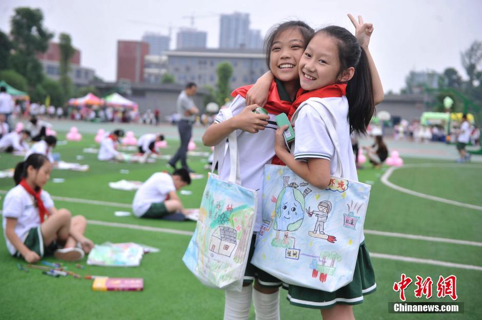 重庆小学生手绘环保袋 呼吁市民环保出行[组图]