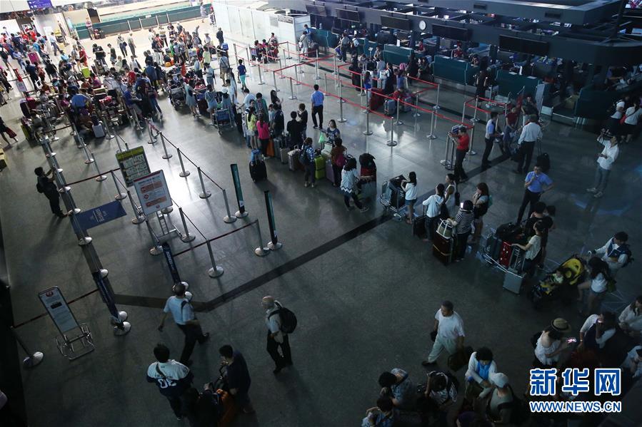 6月2日,台湾桃园机场第二航站楼大厅因暴雨袭击而停电。当日,受暴雨天气影响,台湾桃园机场部分设施和附近道路严重积水,旅客出行受到影响。新华社发