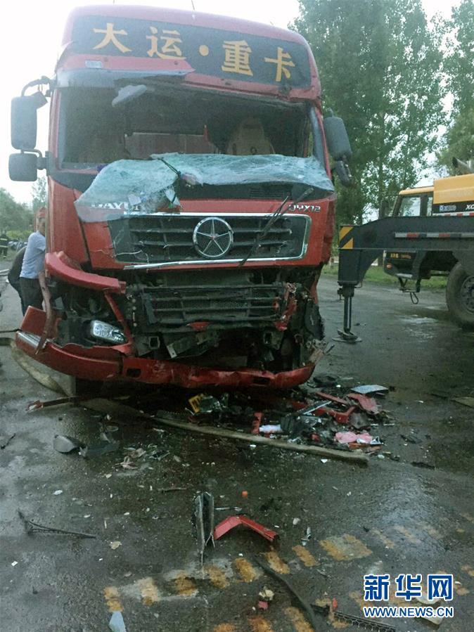 6月4日在河南省宝丰县商酒务镇拍摄的车祸现场(手机拍摄)。据河南宝丰县公安局消息,6月4日下午4时左右,该县商酒务镇境内发生一起中型客车与货车相撞事故,目前已造成4人死亡,14人受伤,其中3人伤情危重。目前,事故原因正在进一步调查中,善后工作正在开展中。新华社发
