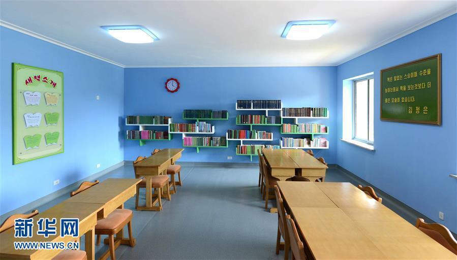 朝鲜万景台少年团夏令营6月6日举行改建工程竣工仪式,并于当天开始首期夏令营。图为朝中社6月7日提供的照片显示的是朝鲜万景台少年团夏令营图书室。图片来源:新华网