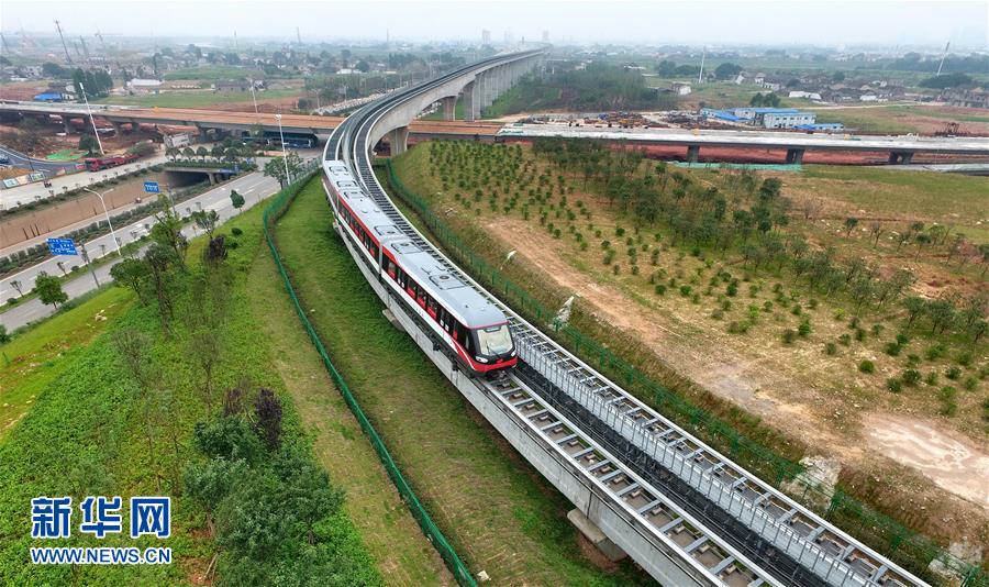 这是上线试运营中的长沙磁浮快线(6月7日摄)。新华社记者 龙弘涛 摄