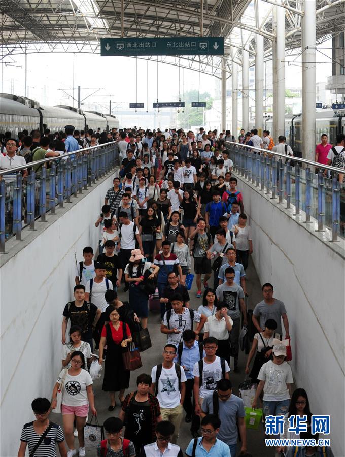 6月11日,旅客在郑州火车站出站。当日是端午节假期的最后一天,各地迎来返程客流高峰。 新华社记者冯大鹏摄