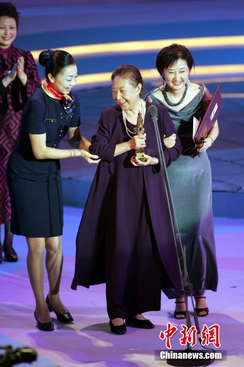 2005年11月12日,第二十五届金鸡奖颁奖晚会在海南三亚举行,年逾八旬的女演员金雅琴凭借在电影《我们俩》中的精彩表演获得最佳女演员奖。中新社记者 毛建军 摄
