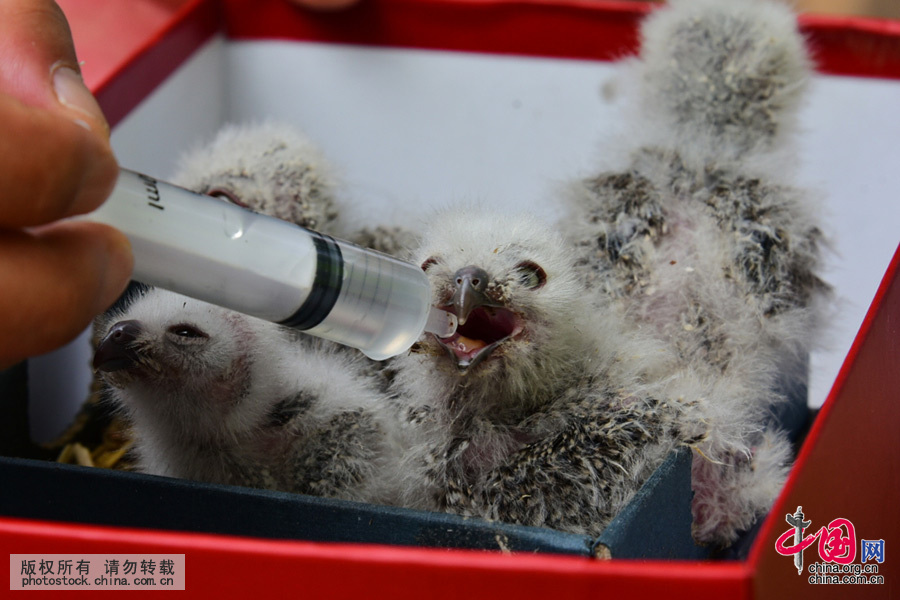 野生动物救护站工作人员在给鸺鹠喂水。中国网图片库 李四信摄